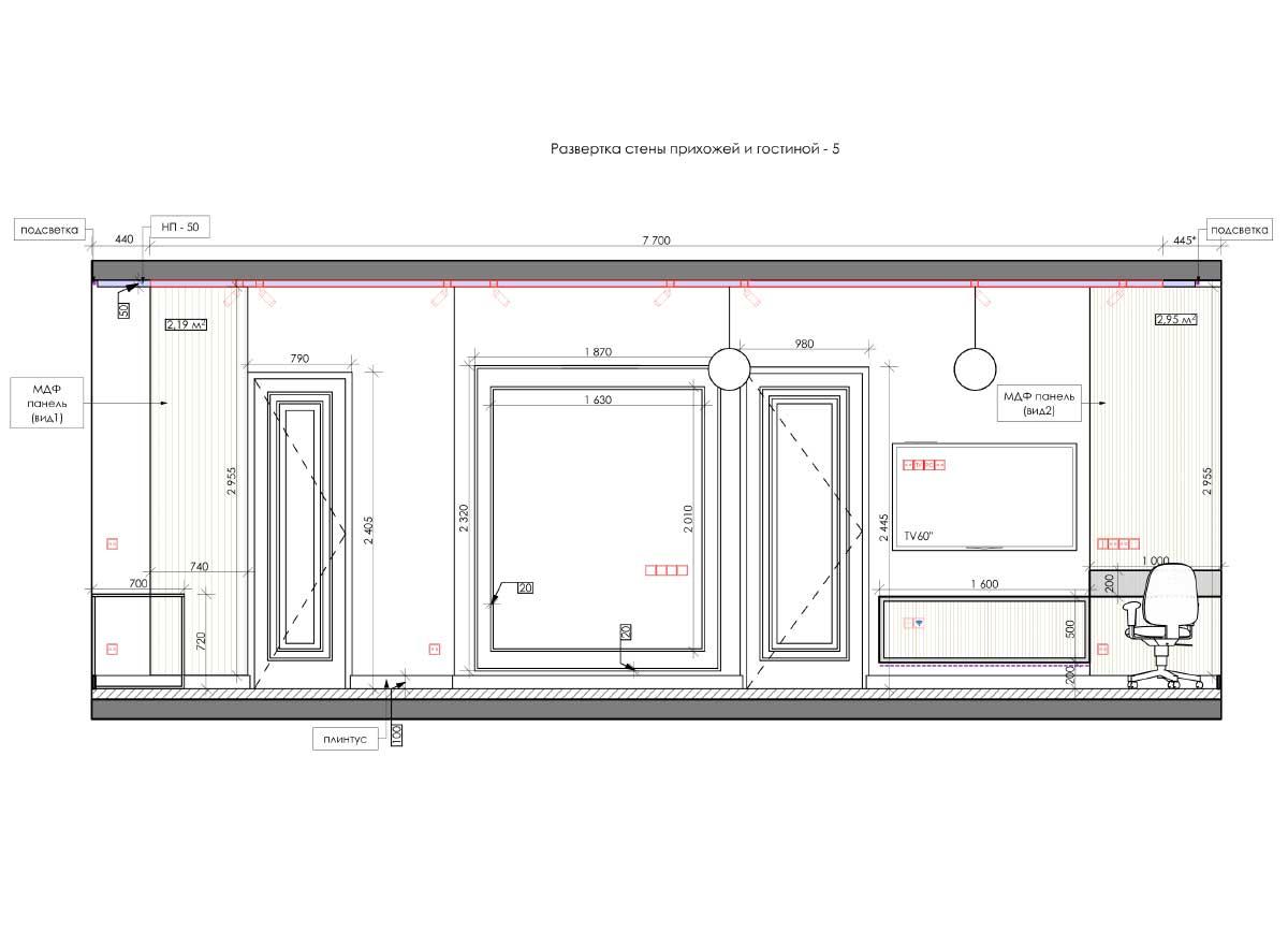 Коридор плавно перетекает в кухню‑гостиную, где отсутствие перегородок и дверей создает ощущение единого, связного пространства. Светлая кухонная мебель и аккуратно сгруппированные духовой шкаф с холодильником формируют читабельную «стену», не создавая визуального шума. В центре комнаты — овальный стол под элегантной люстрой, а в гостиной удачно вписалась консоль, выполняющая роль рабочего стола. Для акцента в интерьере одна из стен оформлена выразительной синей декоративной штукатуркой, которая разбавляет нейтральную гамму и задает настроение.